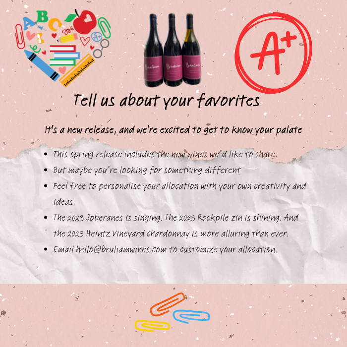 Those “austere” 2023’s are slowly unfurling their cramped knees and elbows, softening around the edges. I opened a 2023 Soberanes yesterday, and she was singing. The 2023 zinfandel is showing beautifully. And the 2023 Heintz chardonnay is magic. (Thank you to everyone who takes time to send kind emails and gorgeous bottle shots sharing how much they are LOVING this wine!). If you’re already nostalgic for the ‘23’s, let me know. We can customize your order to include your favorites.